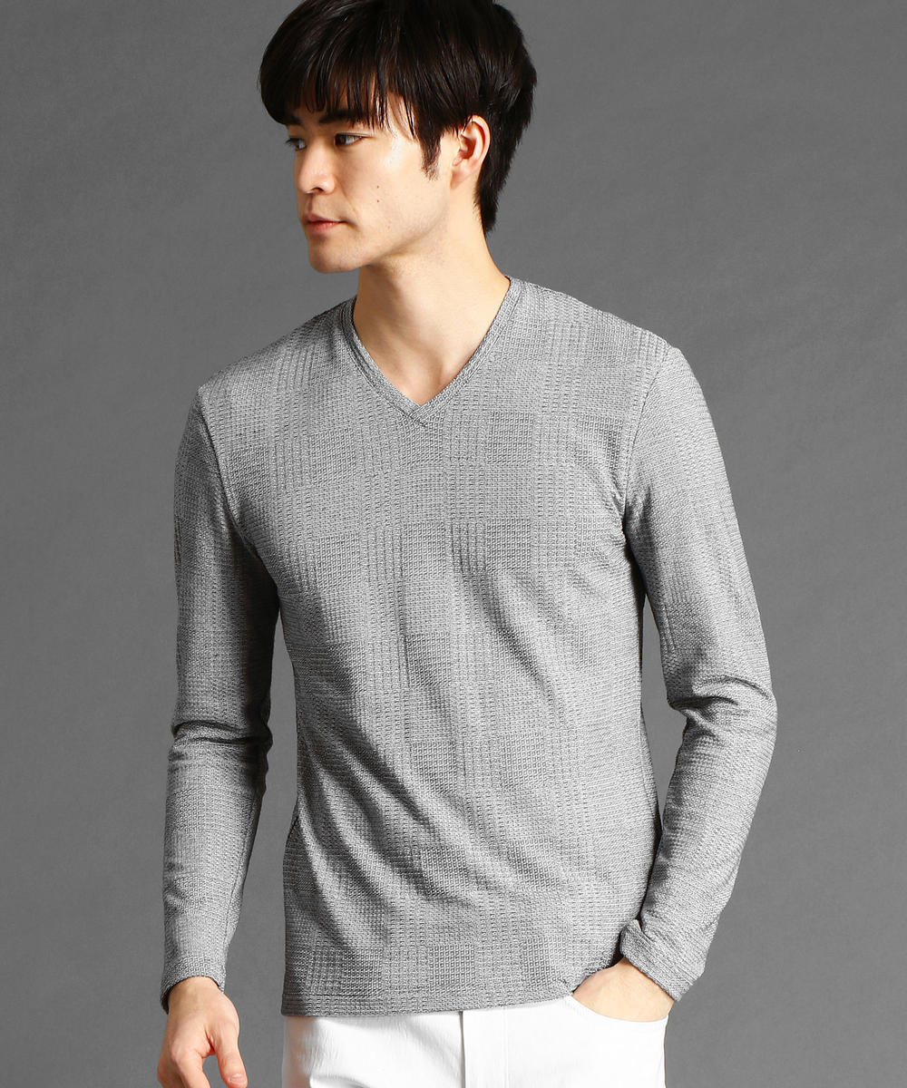 メンズ 長袖 カットソー ワッフル ジャガード Vネック カットソー メンズファッション通販 スプートニクス