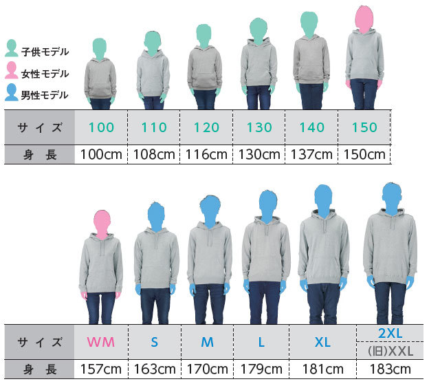 オリジナルパーカーのサイズ紹介 イベント向けのパーカーです