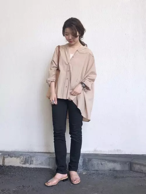 ベージュシャツ 黒スキニー Fashion Pants Korean Fashion Fashion